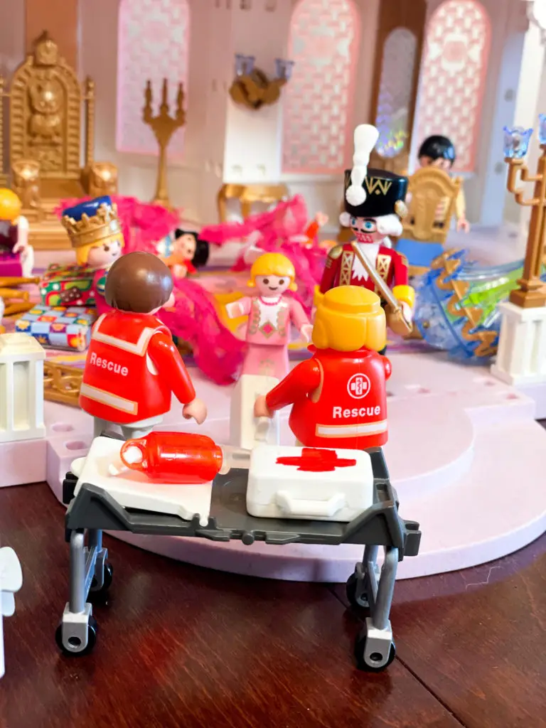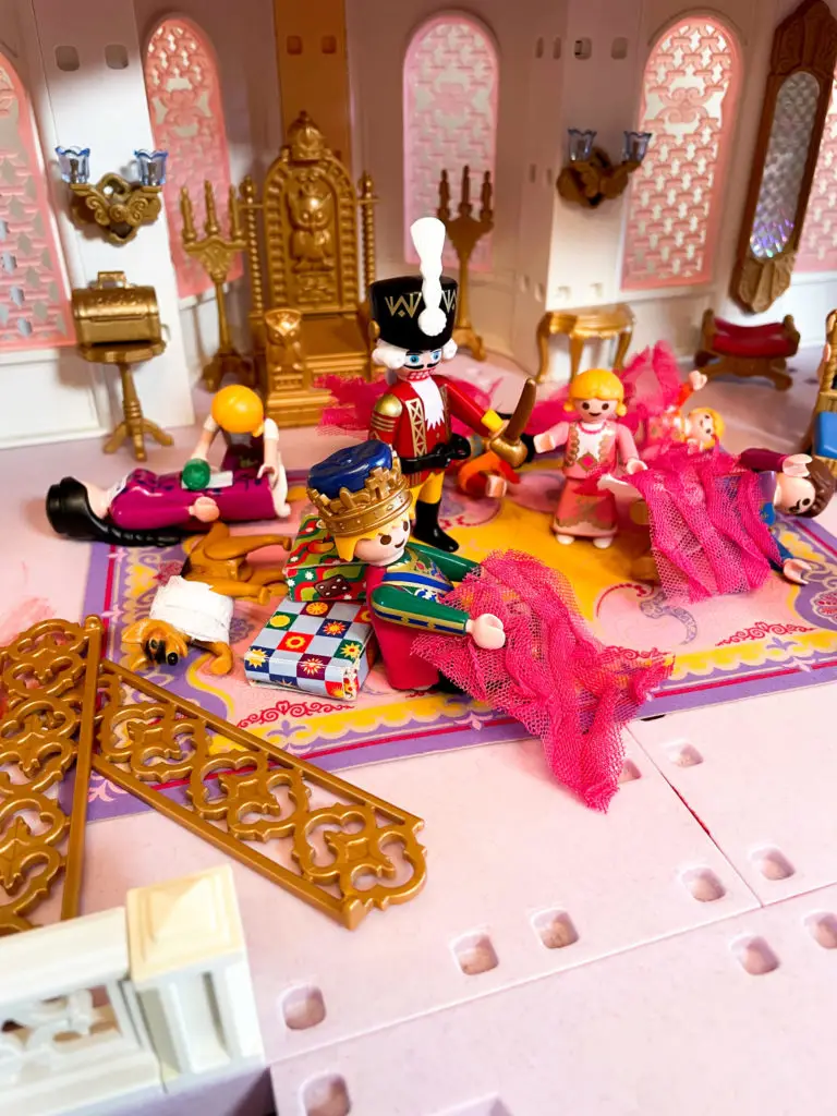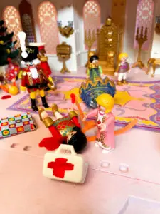 Marie and her family enjoy the traditional Christmas evening gathering at the Playmobil Castle, including dancing and a visit from Herr Drosselmeyer. Marie and her brother receive extravagant gifts, Marie’s is an exquisitely crafted nutcracker. Suddenly, there is a sound to the south of the palace, and then a great cacophony as a marauding band of pirates crashes the palace’s sea wall to steal their treasures. While the palace guard, led by their knight defend the castle, Marie rushes to get an IFAK to care for wounded casualties, while the Nutcracker provides security.